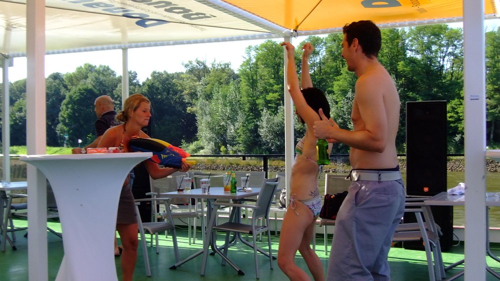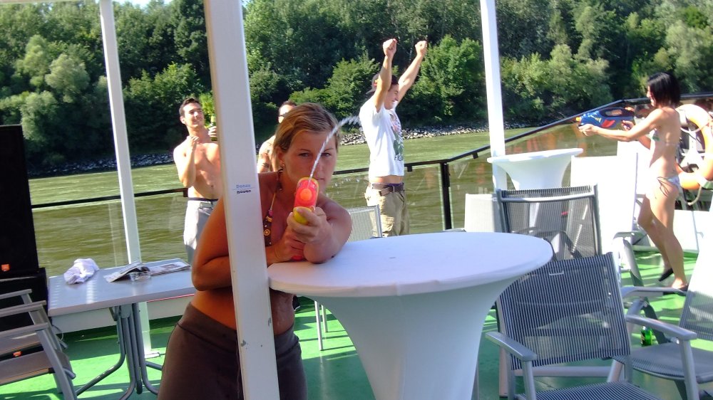 Die Fahrten finden bei jedem Wetter statt! Auf Knopfdruck kann das Freideck der MFS Kaiserin Elisabeth 2 großteils überdacht werden (bei starkem Regen nicht möglich!, und das große Unterdeck bietet sowieso genügend Leuten Platz! Kein Grund also, sich von etwas Regen oder Wolken von einer unglaublichen Open Air Party abhalten zu lassen!