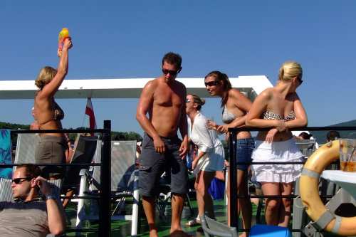 14.45 Uhr – 20.45 Uhr: Nationales und internationales DJ – Line Up mit feinster Housemusic am Freideck. Cocktails, Snacks, etc. während der ganzen Fahrt erhältlich! Ab 18.00 Uhr Abendessen an Bord möglich (extra zu bezahlen!).