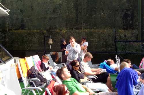 08.45 Uhr – 12.15 Uhr: Chillen und sonnen am Freideck zu chilliger Hintergrundmusik, Cocktails, Snacks, etc. während der ganzen Fahrt erhältlich!