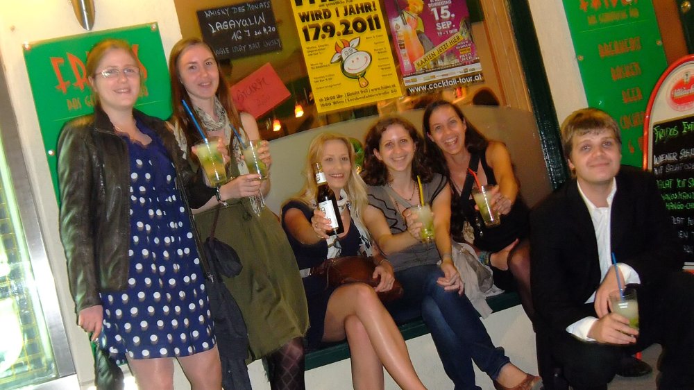 Die glücklichen Besitzer des COCKTAILTOUR Kombitickets ziehen ab 19:00 Uhr durch Wien von einer Szene-Bar zur nächsten und erhalten dabei eine Kostprobe aus der bunten Welt der Mixgetränke: angeführt vom „Absolut Fridos“ über „Caipirissima“ bis hin zum „Cuba Libre“.