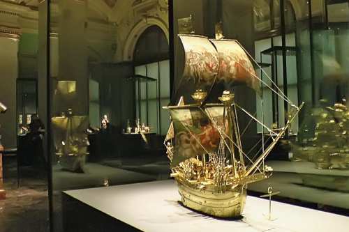 Vom späten Mittelalter bis zur Barockzeit sammelten die Kaiser und Fürsten aus dem Hause Habsburg hier das Seltene und Außergewöhnliche und die Künstler schufen für sie virtuose Kunstkammerstücke aus kostbaren Materialien wie Elfenbein, Bronze und Gold.