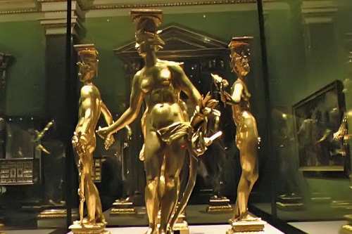 Als „Wiege des Kunsthistorischen Museums“ umfasst die Kunstkammer Wien in ihren kostbaren Höhepunkten herausragende Goldschmiedearbeiten wie die berühmte „Saliera“ von Benvenuto Cellini, Spitzenleistungen der Skulptur, darunter die „Krumauer Madonna“, sowie meisterhafte Bronzestatuetten, filigrane und bizarre Elfenbeinarbeiten, virtuose Steingefäße, aber auch komplizierte Automaten und vieles mehr.