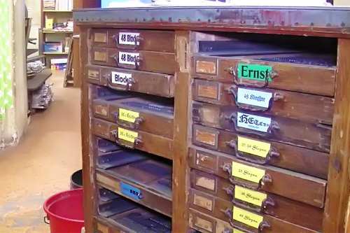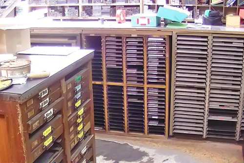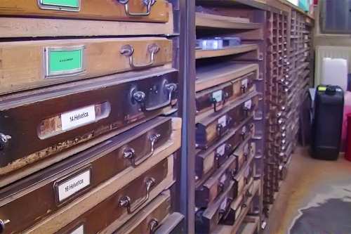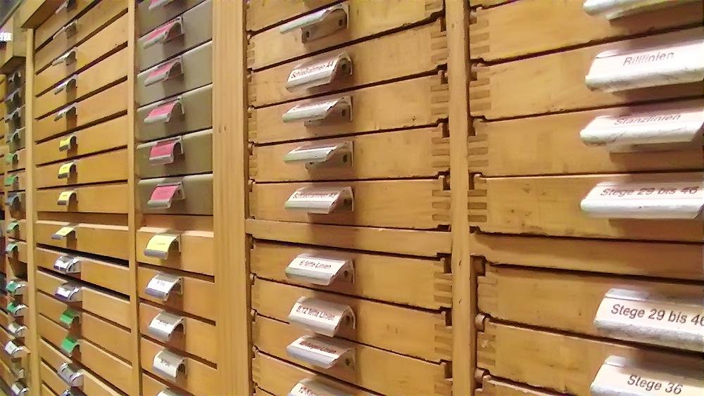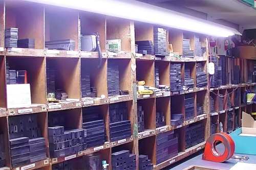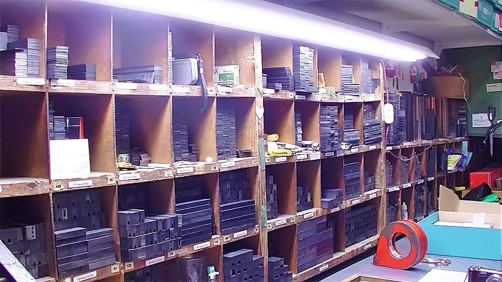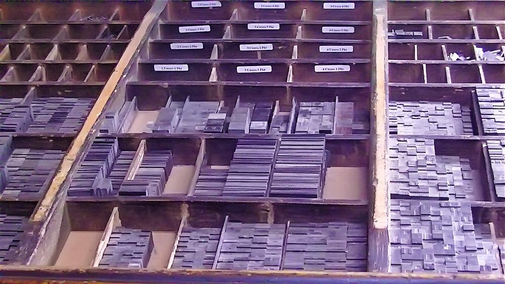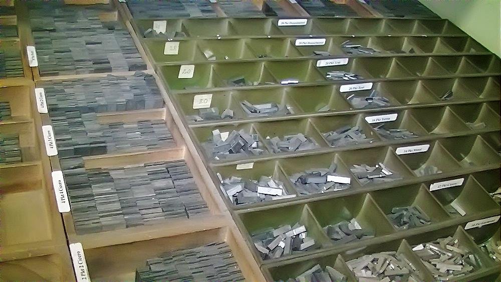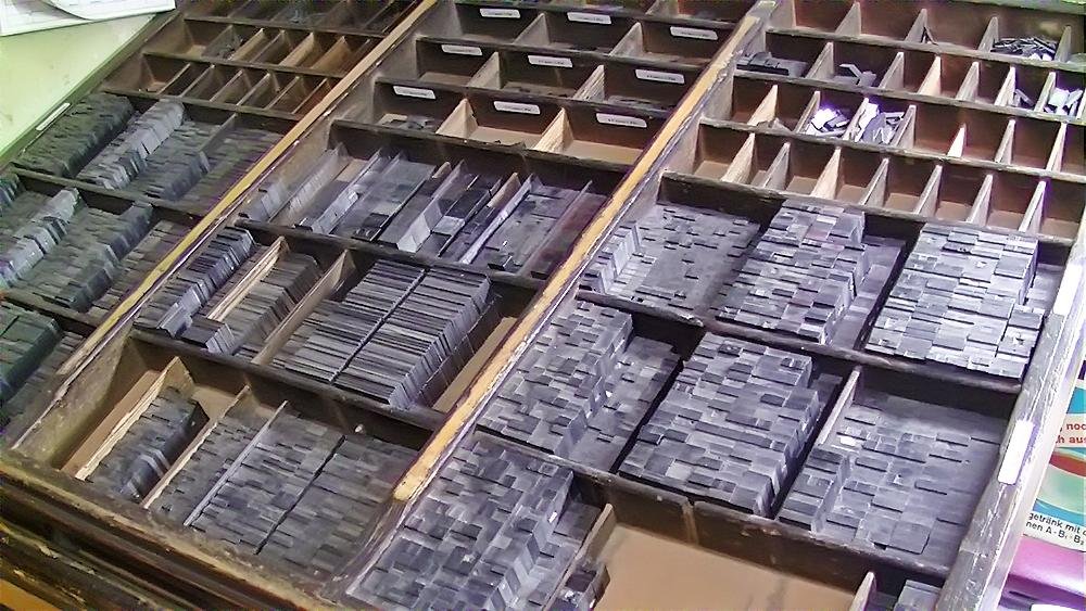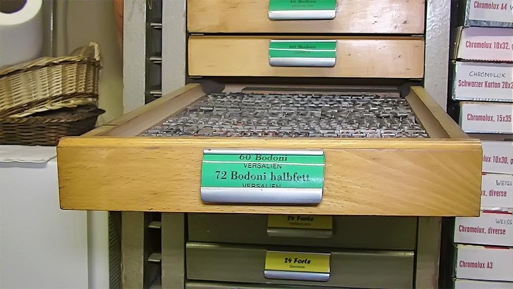 Mit zunehmendem Einbruch der neuen Technologien wurde eine Umstellung in der Produktion notwendig. Das Auflassen des Bleisatzes und Buchdrucks in den meisten Druckereien gab uns die Möglichkeit Mengen an Kostbarkeiten, wie Holzschriften und Handsatzschriften wie sie heutzutage nicht mehr gekannt, zu erwerben. Im Laufe der Jahre wurde aus der Lohnsetzerei eine richtige “Bleiburg”, wo von der Helvetica über Garamond und Bodoni bis hin zur englischen Schreibschrift, einfach alle Schriftcharaktere zu finden sind.