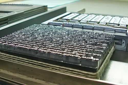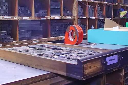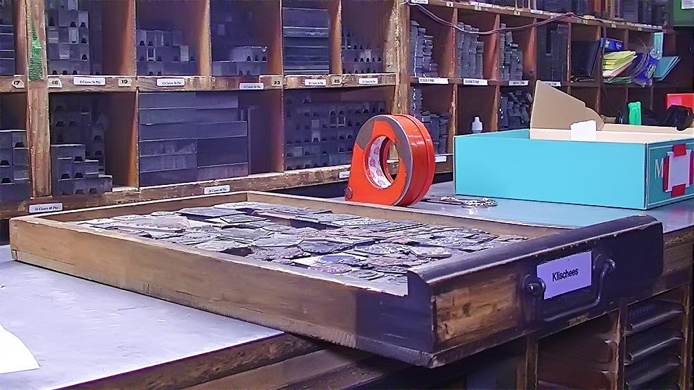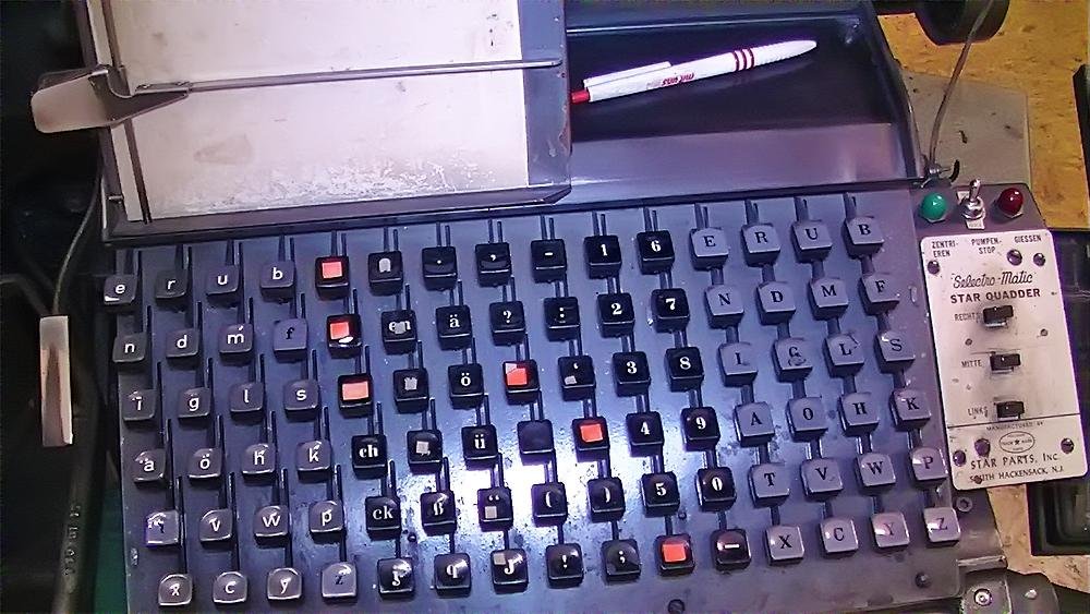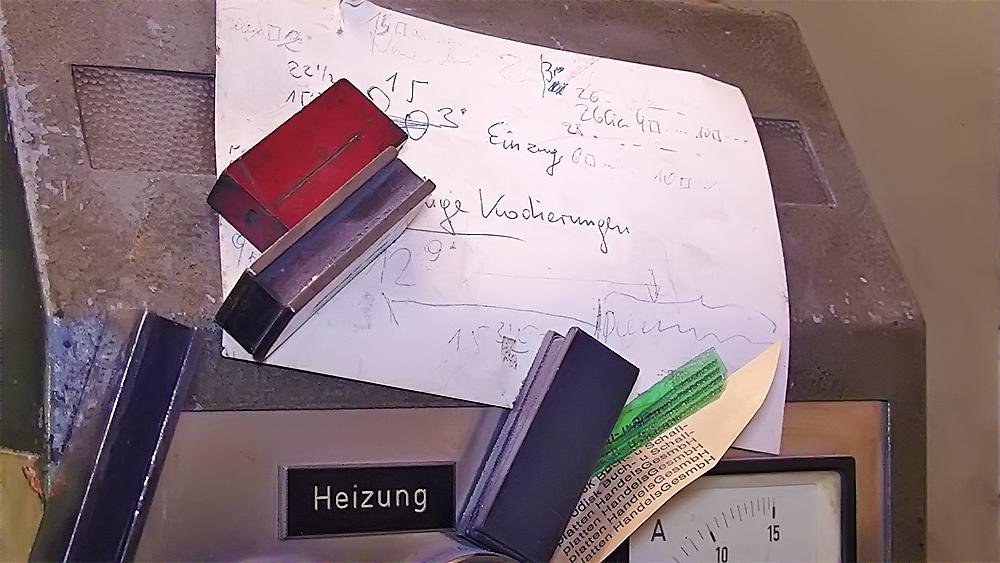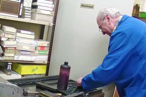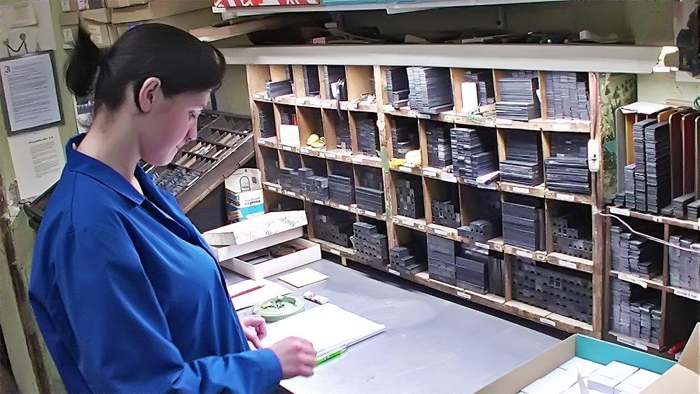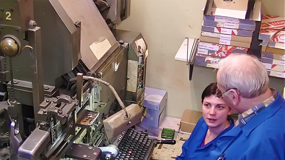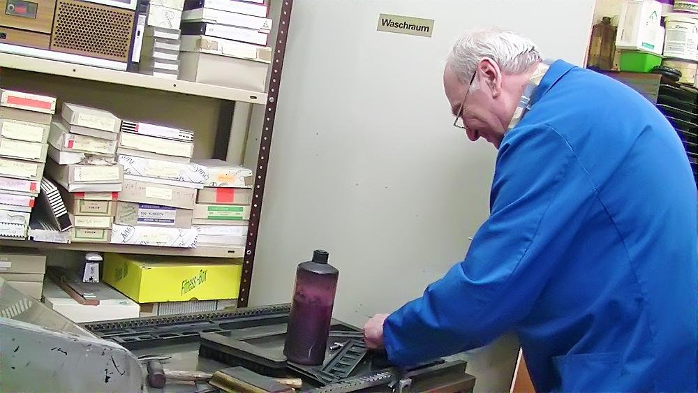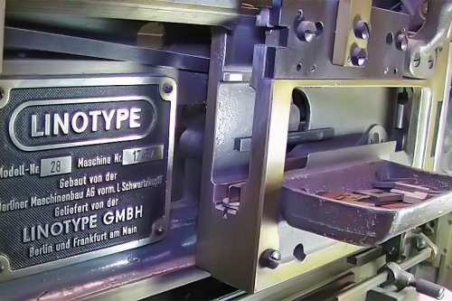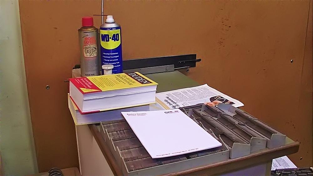 Heute stellen wir Maschinensatz (Bleizeilen) zumeist für Namensprägungen in Kalender bzw. Zeilen zum Durchdrucken von Erlagscheinen her.