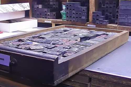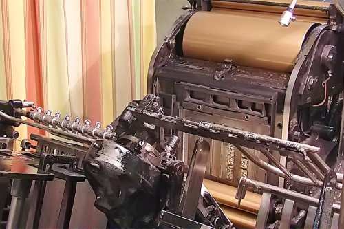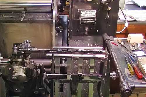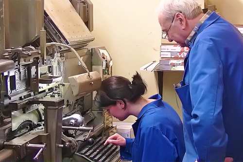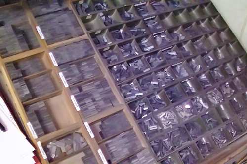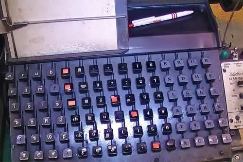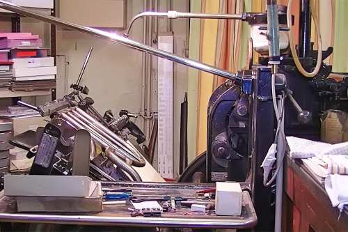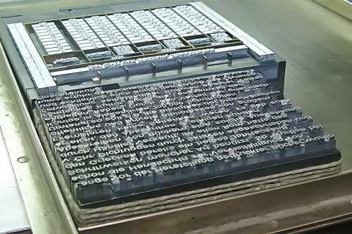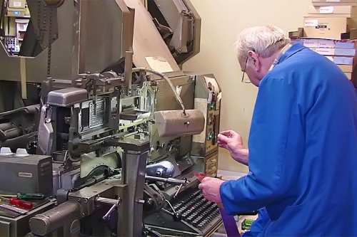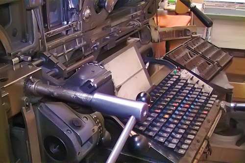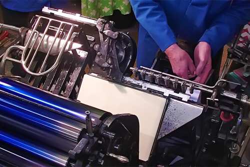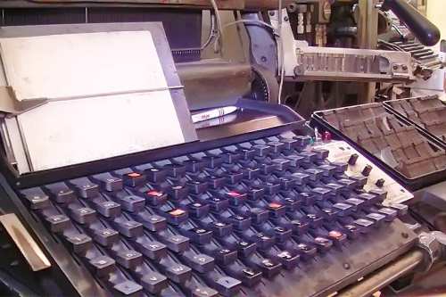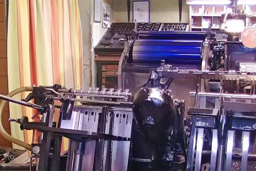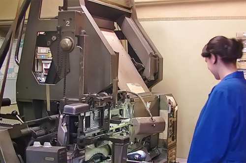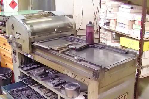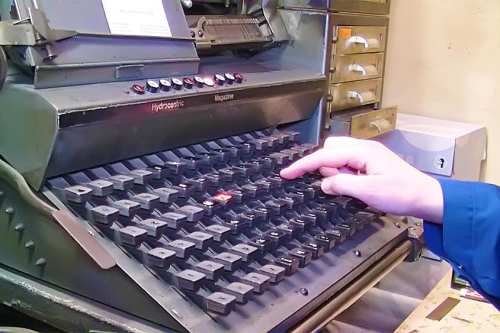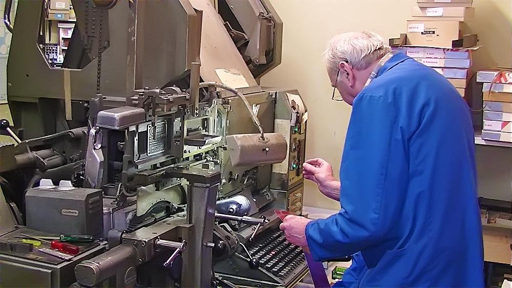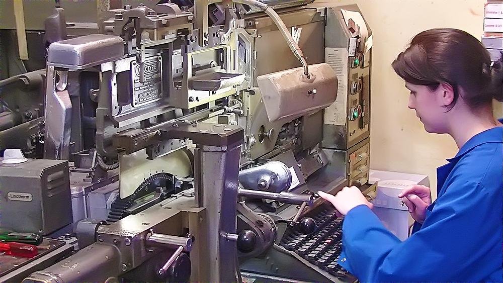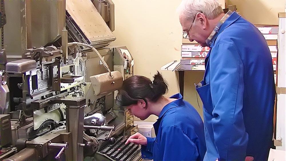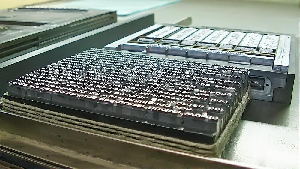 Heute stellen wir Maschinensatz (Bleizeilen) zumeist für Namensprägungen in Kalender bzw. Zeilen zum Durchdrucken von Erlagscheinen her.
