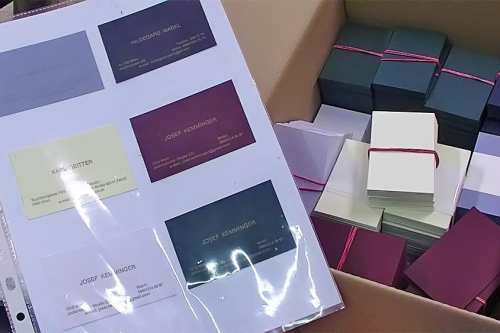 Vermählungskarten – Einladungen – Geburtsanzeigen – Kuverts – Promotionsanzeigen – und Sponsionsanzeigen – Bleisatzherstellung – Urkunden usw. gedruckt auf Spezialpapier und hochwertigen Kartons.
