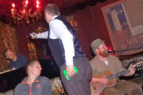 Ein Abend im legendärem Queen Club Wien, mit viel rotem Plüsch, getigerten Sofas, mit fragwürdiger Tombola und etlichen neuen Liedern im Gepäck.