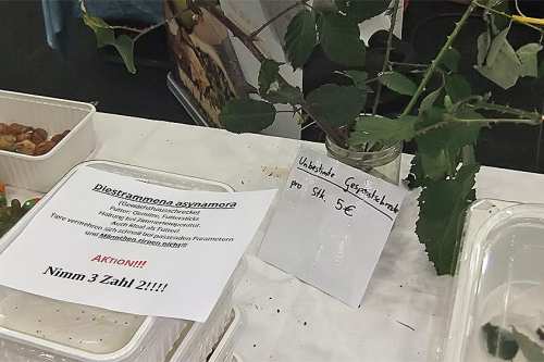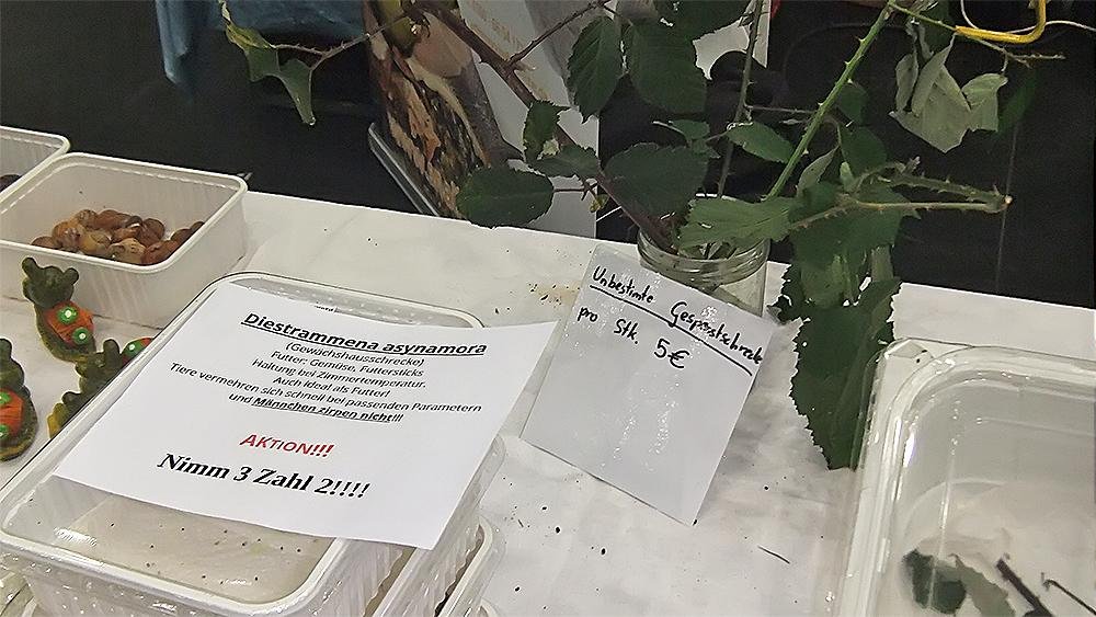Auf jeden Fall aber zu Kaufen gibt es eine Menge Zubehör für Terrarientiere, eine Vielzahl von exotischen Pflanzen, Terrarien, Aquarien und Technik sowie ein Riesenangebot von Aquarien und Terrariendekoration zu besonders günstigen Messepreisen.
