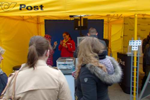 Sonderpostamt – hier gibt es die Sonderbriefmarke „250 Jahre Prater“ zu kaufen.
