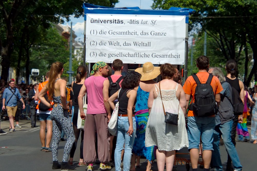Trotz ausgelassener Stimmung ist die Regenbogenparade ein wichtiges politisches Zeichen für die völlige rechtliche Gleichstellung und für die Sichtbarkeit der Vielfalt von Lebensweisen und Liebesformen, des Spektrums an Geschlechtsidentitäten und der Diversität der Community. Daher ruft die HOSI Wien wieder alle auf, sich aktiv an der Regenbogenparade zu beteiligen!
