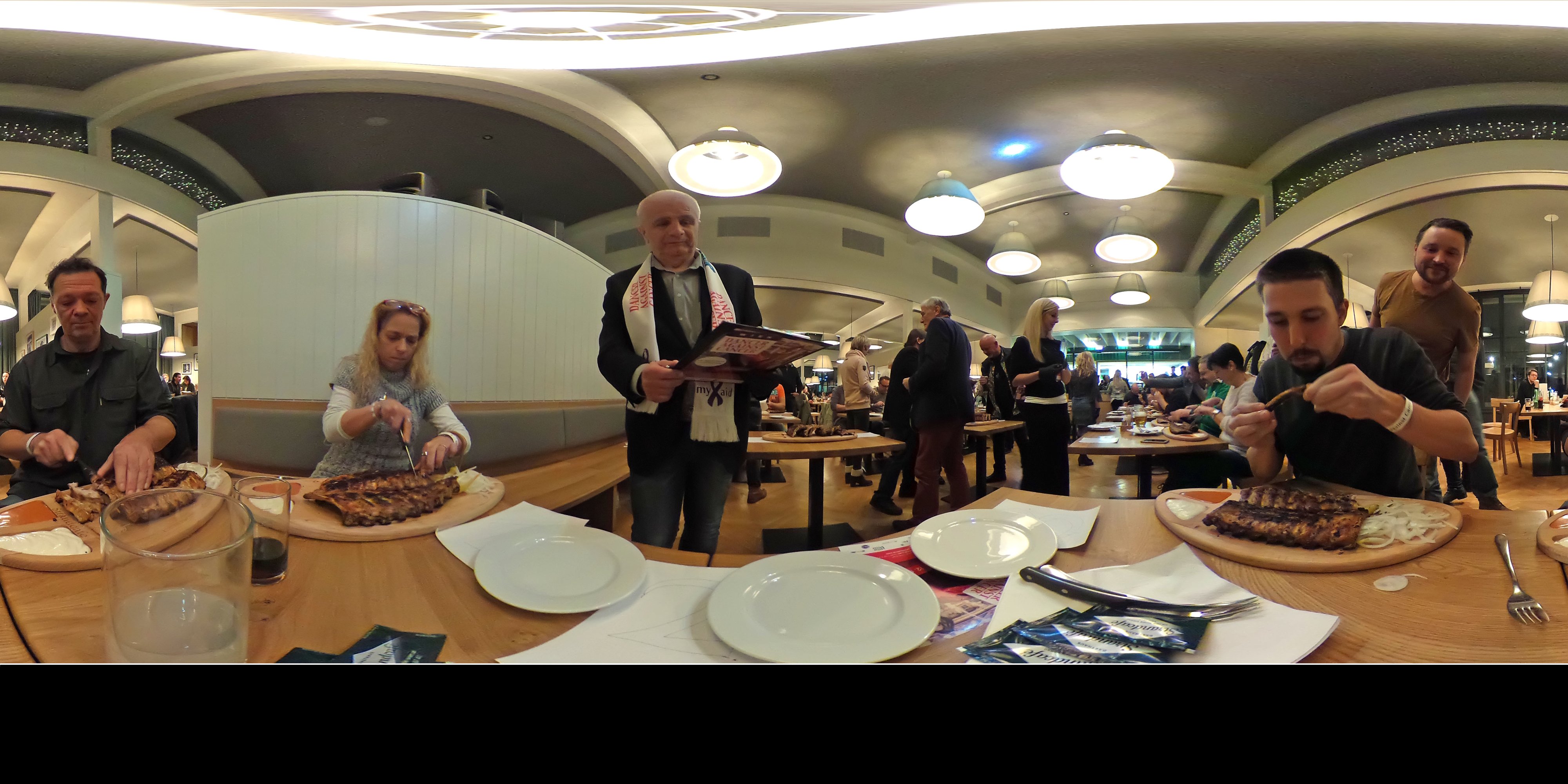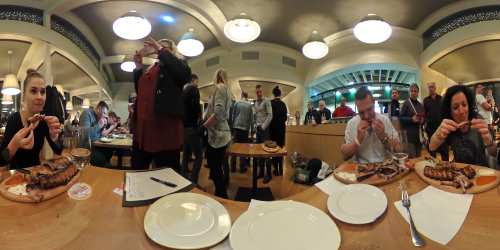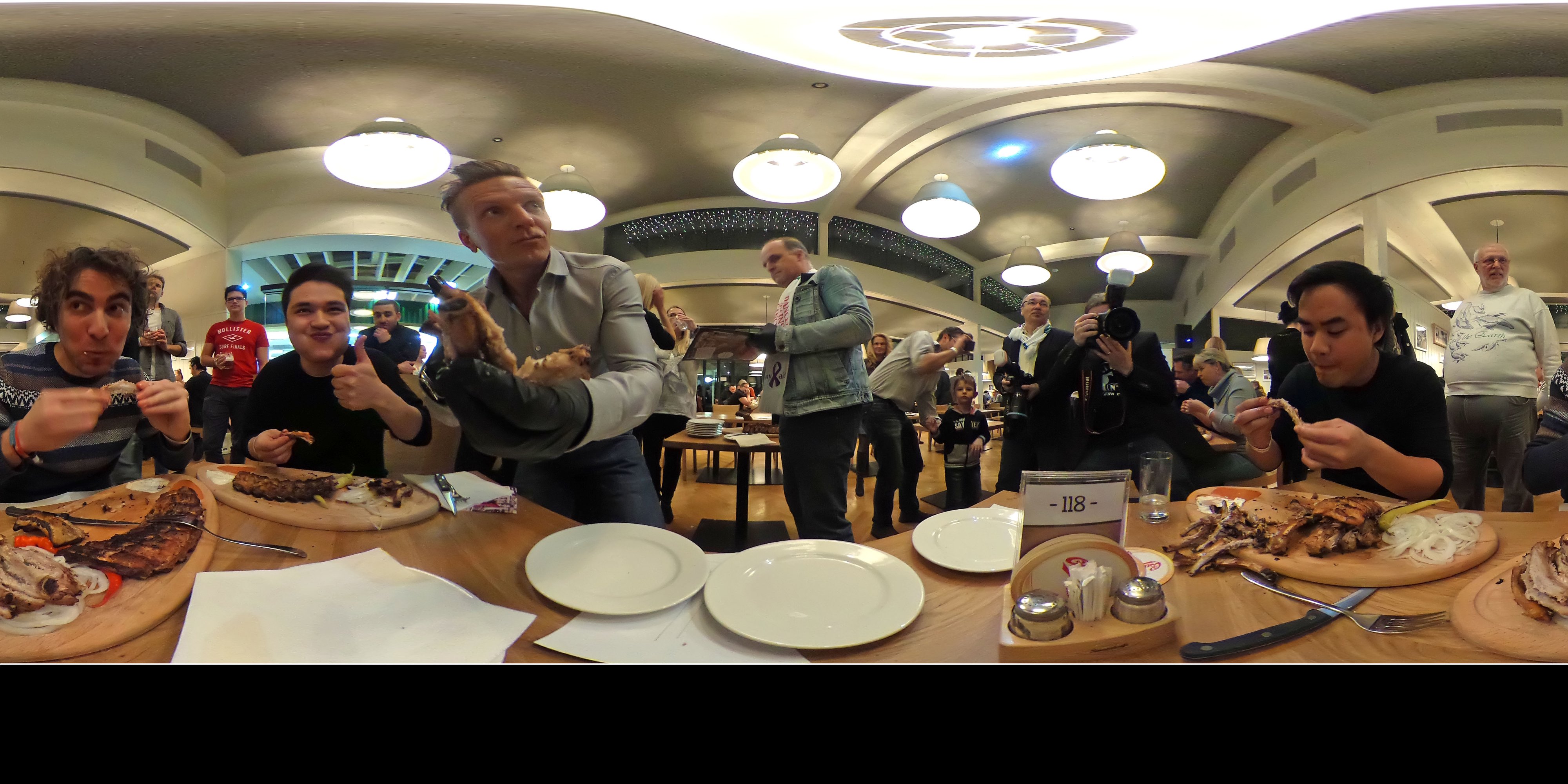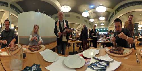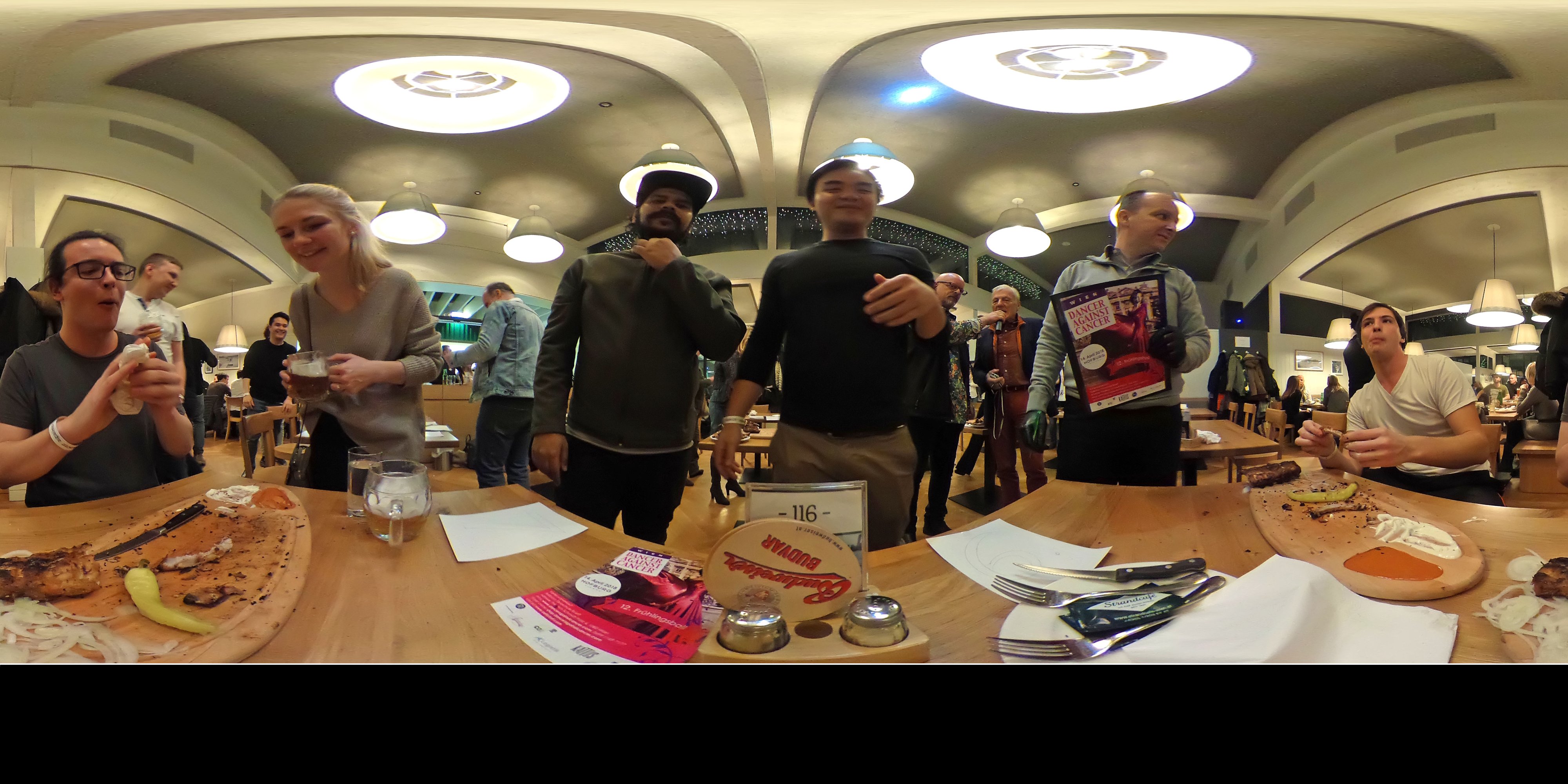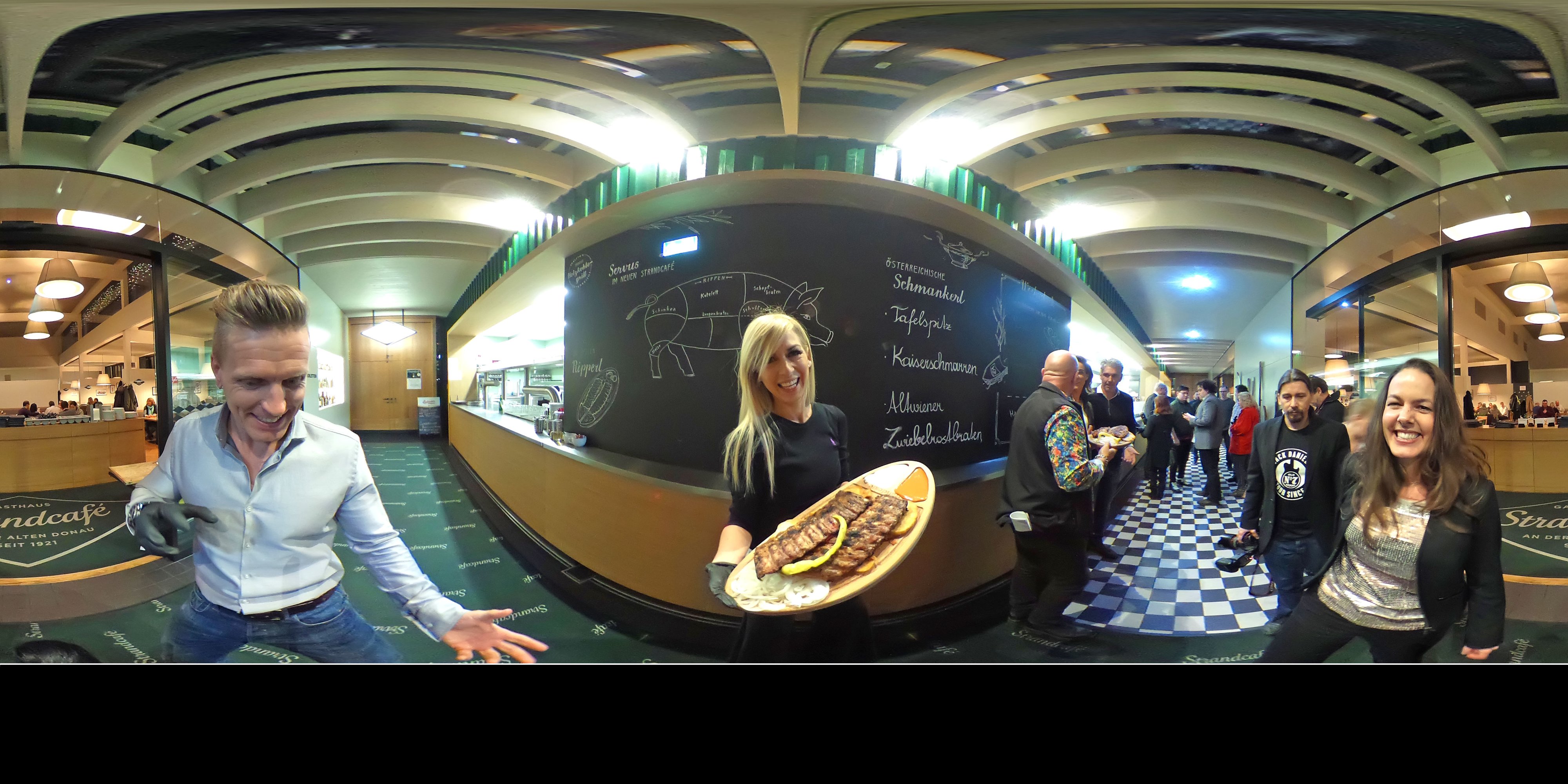 Auch im tiefsten Winter glüht im Strandcafé der – mit 7 Metern – größte Holzkohlegrill Österreichs auf Hochtouren. Montagabend kam der XXL-Griller, er schafft immerhin 50 Lagen Ripperl in 15 Minuten, trotzdem an seine Grenzen. Mehr als 150 Gäste, darunter zahlreiche Prominente, stellen sich bei „Ripperl against Cancer“ der Herausforderung, möglichst viele Ripperln gegen die Zeit zu verspeisen. Für jeden abgenagten Knochen spendete das Strandcafé an der Alten Donau 50 Cent an den Verein Dancer Against Cancer von Yvonne Rueff. „Ich selbst bin ja Vegetarierin, aber zumindest habe ich alle Teilnehmer dabei überprüft, dass hier nichts verschwendet, sondern jeder Knochen sauber abgenagt wurde. Es war wirklich beeindruckend, wie schnell manche der Teilnehmer die Ribs verschlungen haben“, so Rueff. Strandcafé-Betreiber Josep Yeritsyan: „In Summe haben die Teilnehmer 1400 Knochen / Spareribs verspeist. Der Rekord liegt bei 28 Knochen in 5 Minuten. Ich freue mich, dass wir 1500 Euro an Dancer against Cancer spenden können.“ Der Ripperlkönig 2018 kommt mit Oswald Rössler aus Wien. An „Oswald der Erste“ wurde ein 500 Euro Gutschein übergeben.