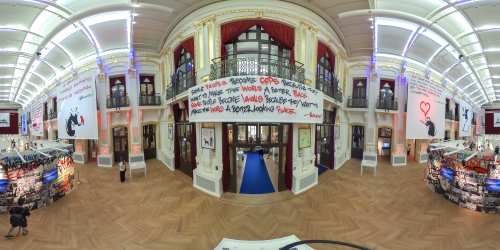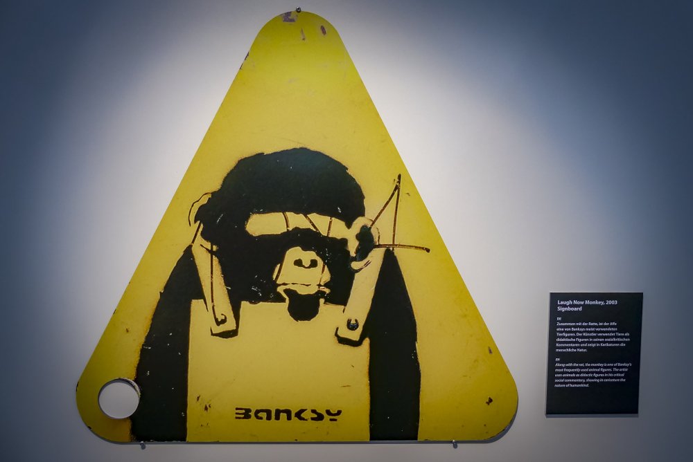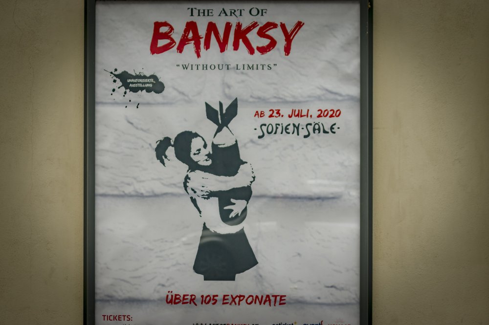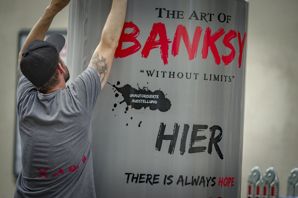 Mehr über Banksy gibt es nicht auf Facebook und Twitter, wohl aber – wie es sich für einen darstellenden Künstler anbietet – auf Instagram und auf der Website des Künstlers. Seine Werke reisen um die Welt, sowohl online, durch Millionen von Shares auf Social Media als auch in der Realität, durch Ausstellungen, die meisten davon sind vom Künstler aufgrund seiner Anonymität, unautorisiert, aber extrem erfolgreich, was seine Werke in die Welt trägt. „THE ART OF BANKSY. Without Limits” ist eine davon.