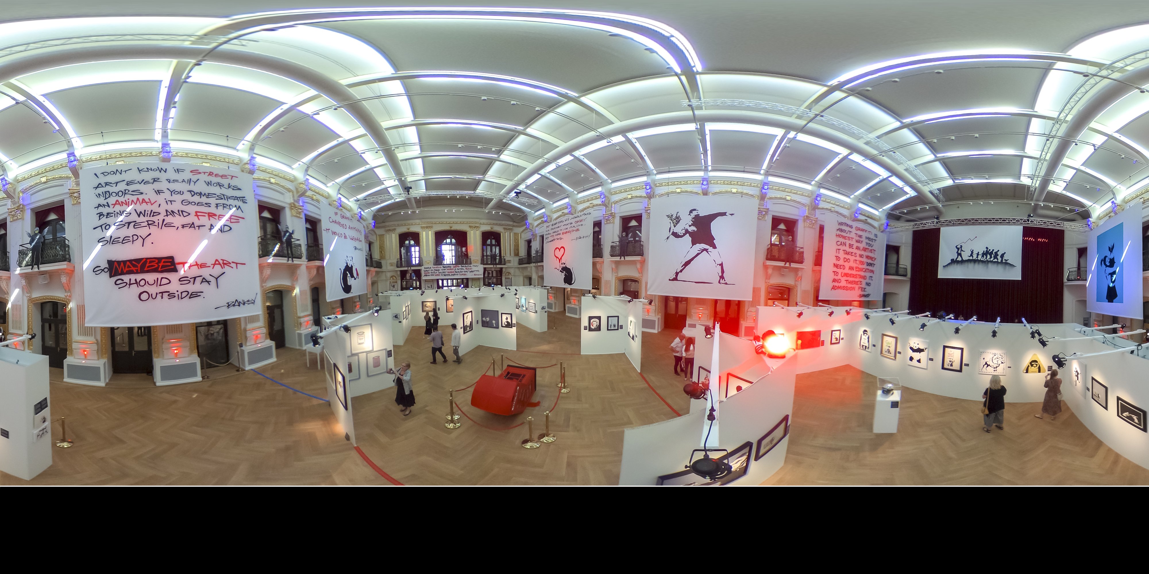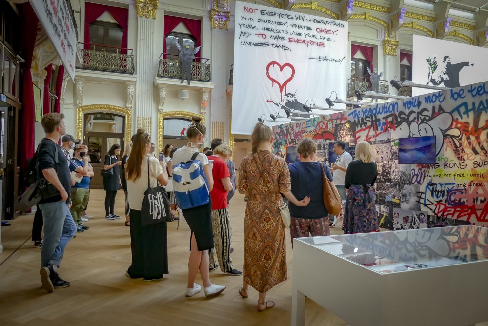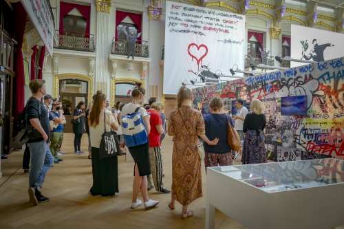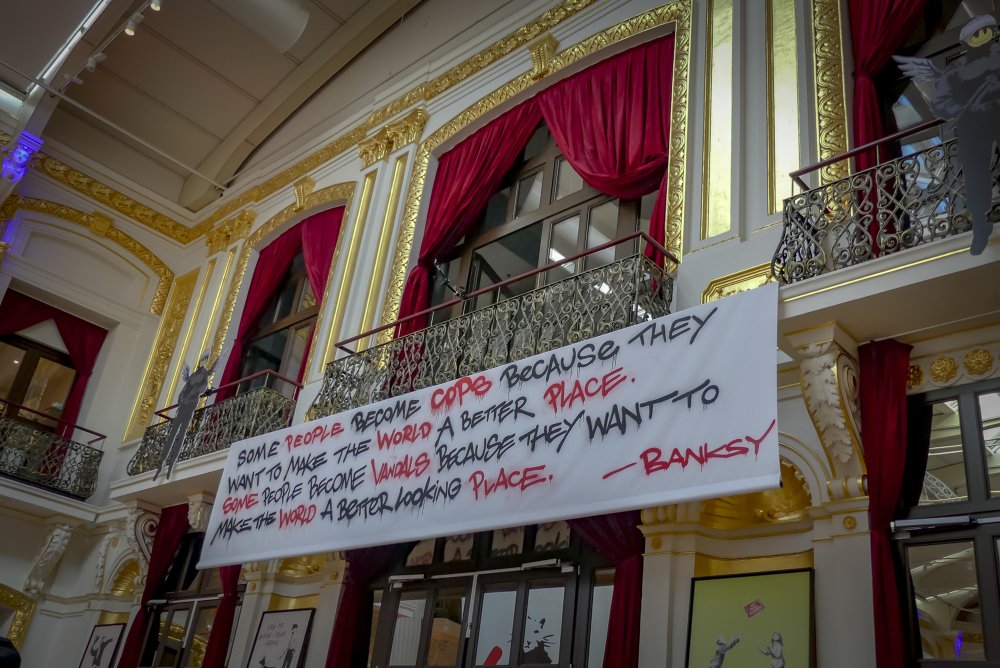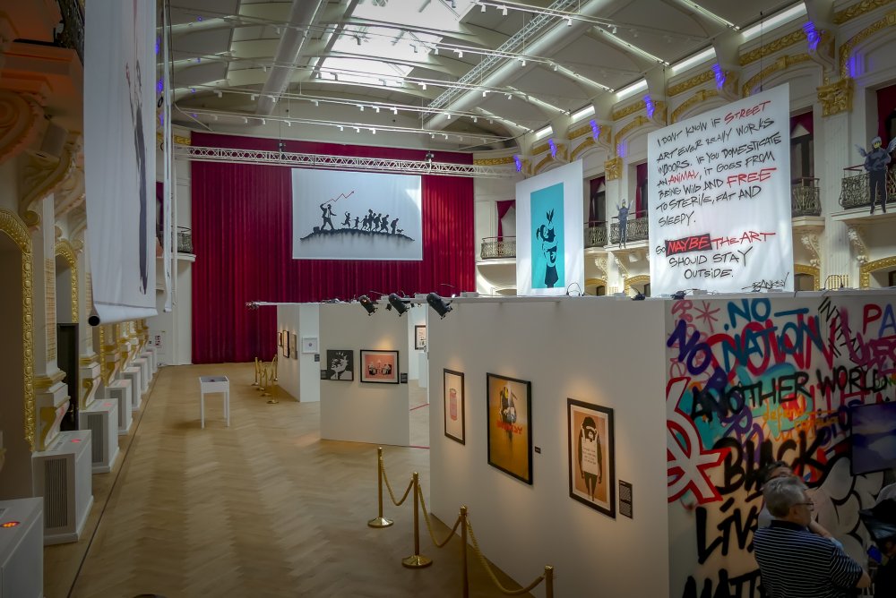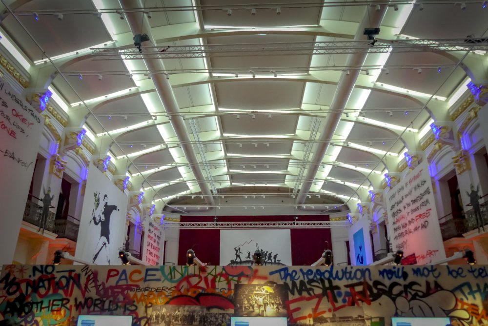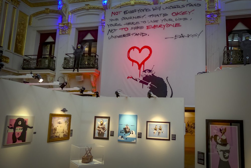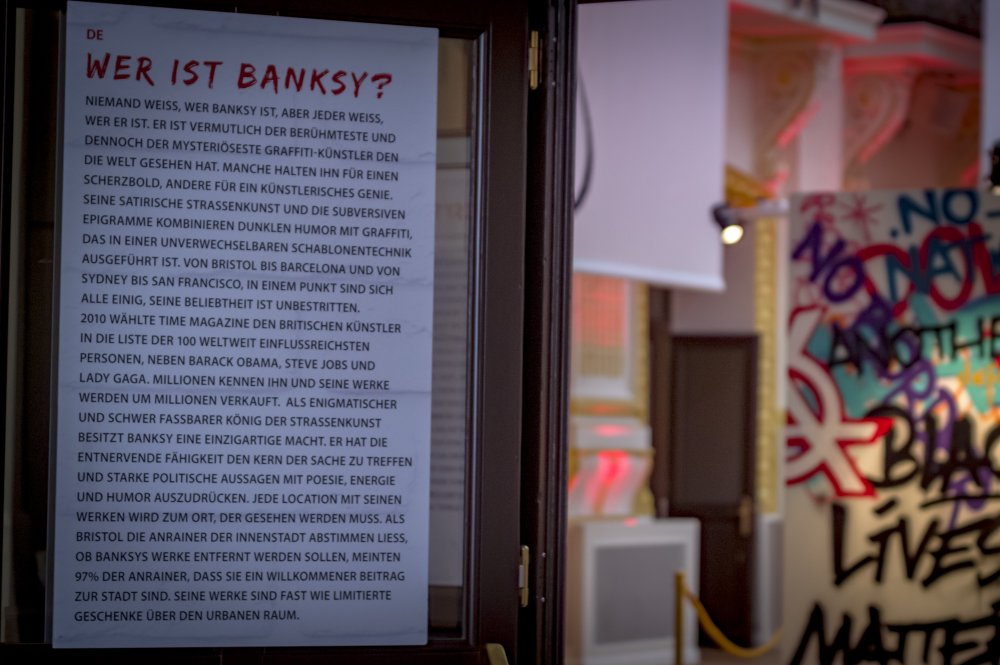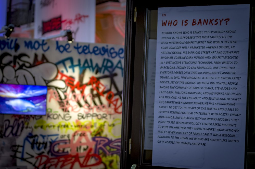 Die Ausstellung „The Art of Banksy“ zeigt mehr als 100 Werke des Künstlers – Fotografien und Drucke, einige eigens für die Ausstellung reproduziert. Eine Videodokumentation gibt Einblicke in Leben und Werk, alles präsentiert in einem einzigartigen Setting.