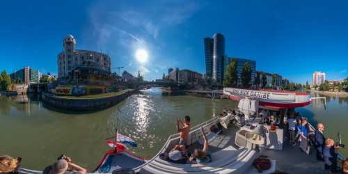 „Eine Fahrt durch die wahrscheinlich längste Open Air-Galerie Österreichs, zeigt den Donaukanal und seine Street Art Kunstwerke aus einem besonderen Blickwinkel“,