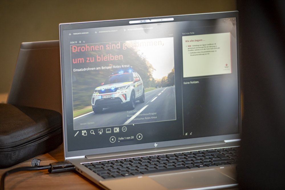 13:05 Uhr ÖRK Bundesdrohnenbeauftragter: gemeinsame Drohneneinsatzpilotenausbildung der nicht-polizeilichen Gefahrenabwehr (Zusammenschluss von Roten Kreuz, Feuerwehr, Bergrettung, Samariterbund und Wasserrettung)
